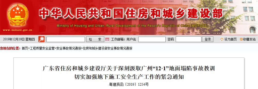 各地級以上市住房城鄉建設主管部門,廣州市交通運輸局,佛山市交通運輸局、軌道交通局: 2019年12月1日9時28分,廣州市廣州大道北與禺東西路交界處,廣州地鐵十一號線沙河站施工區域發生地面塌陷事故,造成3人失聯。11月26日,云南臨滄在建云鳳高速公路第二合同段安石隧道出口處發生突泥涌水,截至29日13時,該事故已造成7人遇難,5人失聯。時值歲末年初,不少建設工程處于趕工期、搶進度的施工高峰期,為深刻吸取教訓,堅決防范遏制生產安全事故發生,根據省委、省政府做好歲末年初安全生產工作的部署,以及省領導指示批示和省安委辦有關要求,現就加強施工現場安全生產工作緊急通知如下:…