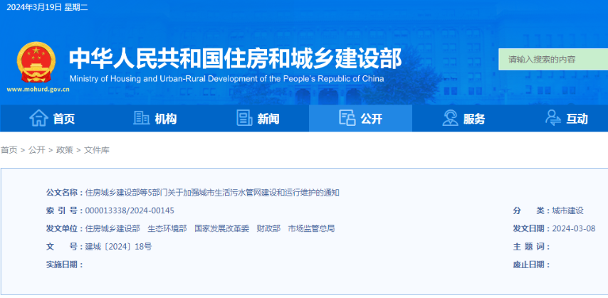 近日,住房城鄉建設部、生態環境部等5部門發布關于加強城市生活污水管網建設和運行維護的通知。 通知提出,到2027年,基本消除城市建成區生活污水直排口和設施空白區,城市生活污水集中收集率達到73%以上,城市生活污水收集處理綜合效能顯著提升。…