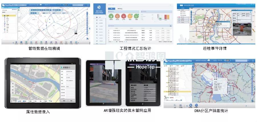 HopeMap智慧供水解決方案以供水管線及附屬設施數據為核心,以地理信息系統(GIS)為平臺,以企業日常運營業務為導向,幫助企業實現供水管線全生命周期信息化管理。