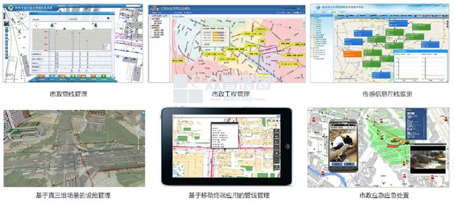 HopeMap地下管網解決方案充分整合城市市政公用管理部門及相關企事業單位(供水、排水、燃氣、照明、市政工程等)現有數據資源、通訊資源、網絡資源、系統資源,建立集市政公用各專題信息為一體的市政數據中心,進而通過智慧市政信息共享服務平臺,建設面向市政不同業務管理需求的綜合應用系統。智慧市政解決方案改變了現有市政專業單位信息化管理各自為政的局面,通過眾智鴻圖獨有的“信息服務網絡”核心技術,實現管理部門和權屬單位的信息共享和協同辦公,達到規劃、建設、管理、運行、服務的數字化、可視化與聯動化的目標,為市政公用全行業全業務信息化開創了全新的建設模式和管理思路。