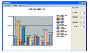 此外系統可對各類管線長度、管點個數及類型進行統計,還可對同種管線不同屬性進行分類統計,統計結果可通過柱狀圖、餅圖、報表等形式輸出。