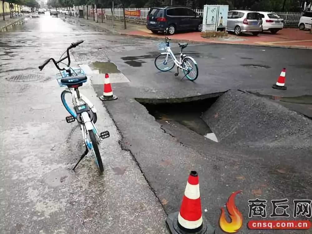 接到高先生反映的情況后,11月8日上午9時(shí)許記者來(lái)到了文化路與芙蓉路交叉口處,看到在該路口北側(cè)的路面上,有一處三四平方米的路面塌陷成為一個(gè)大坑(如圖)。站在坑邊可以看出來(lái),該處塌陷的路面之前曾經(jīng)修補(bǔ)過(guò),部分未塌陷路面的下面已經(jīng)成為空洞,還有積水。為防止出現(xiàn)意外,有人在塌陷處旁邊擺放了共享單車和反光錐桶,提醒過(guò)往的車輛和行人注意繞行。