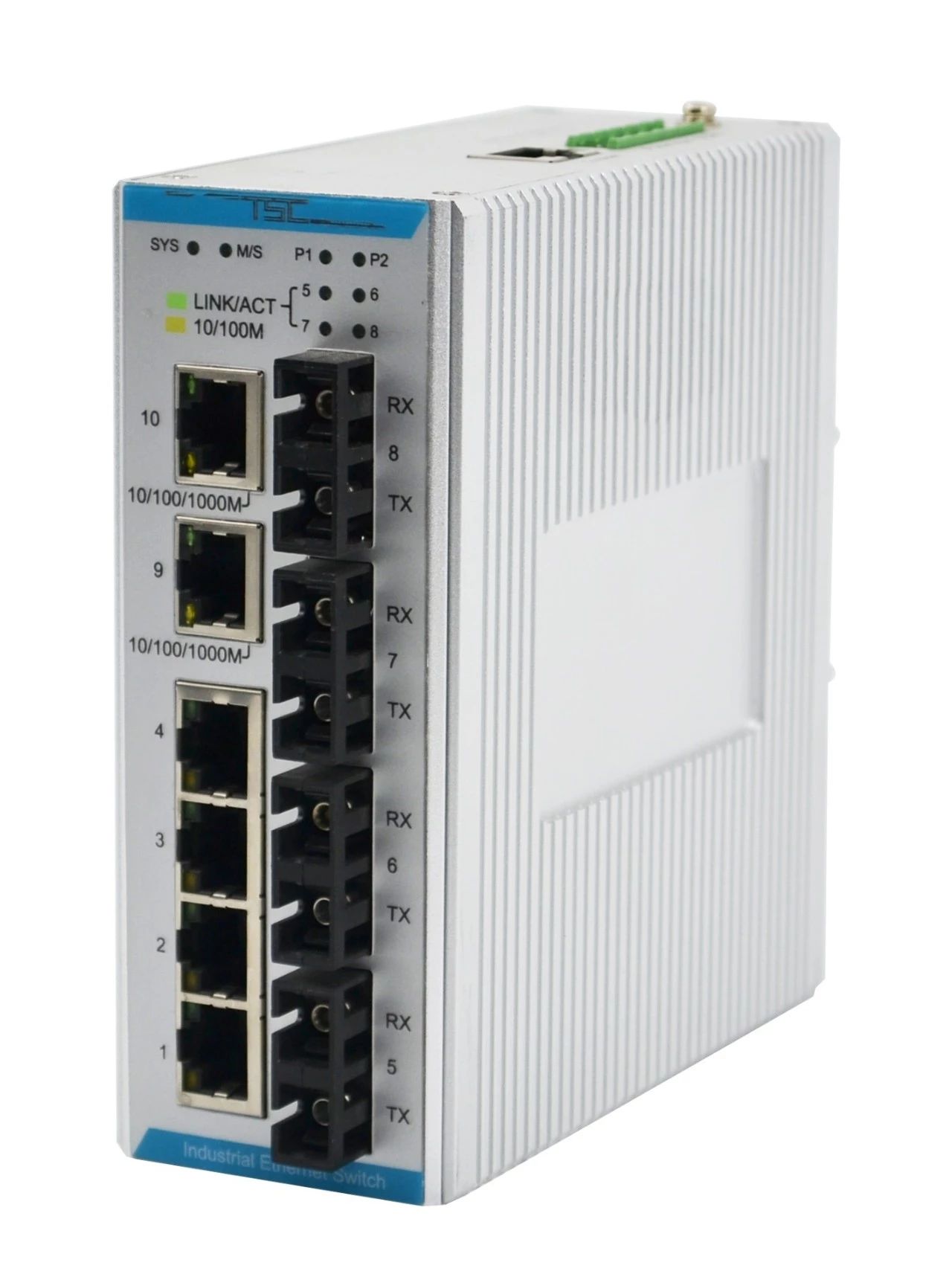 Carat55系列卡軌式二層網管工業以太網交換機具有高性能的交換引擎,可提供全線速無阻塞100M轉發,可構筑高可靠性的冗余環形網絡。采用Carat55系列構筑的冗余光纖環網任何一段通訊通道的故障都將在20ms內被察覺出來并啟動冗余鏈路傳送數據,讓您的自動化系統保持正常工作。