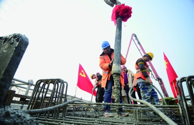 “共構段的鋼筋混凝土強度和抗震要求,都是按照鐵路的標準設計的。”現場技術人員介紹,最高橋墩高達20.8米,有七八層樓那么高,架梁難度陡增。