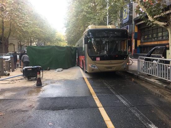 11月18日下午,記者從鄭州交警一大隊(duì)獲悉,18日下午4時(shí)許,鄭州市黃河路與經(jīng)七路路口向南50米處路面塌陷,行徑此處的一輛公交車(chē)陷到坑中無(wú)法動(dòng)彈,致使原本就因熱力搶修施工而部分占用的經(jīng)七路機(jī)動(dòng)車(chē)道被完全占用,其他機(jī)動(dòng)車(chē)無(wú)法通行。