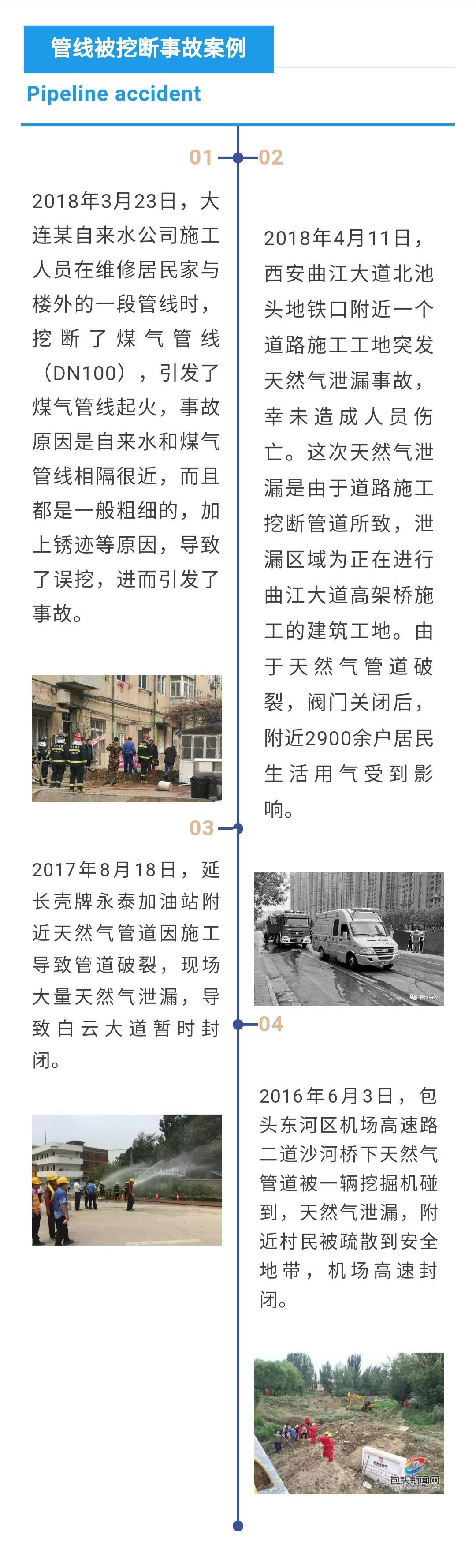4、如不慎出現燃氣管線損毀情況,遠離現場及時撥打電話報警并疏散周邊人群。