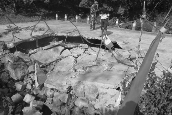 富文鎮政府有關負責人昨日告訴記者,事發后,他們已經將道路封鎖,禁止行人和車輛經過,并將情況上報定安縣交通局,交通局計劃向省交通廳打報告,爭取列入農村公路建設項目庫。該負責人介紹,上個星期,鎮政府請來專業技術人員到現場勘查,目前正在做重建設計方案,由于在設計后還要經過做預算、招投標等程序,所以最快也需要兩個月后才能動工重建。“我們將爭取盡快開工,按有關標準重建,以方便村民們出行和從事生產。”該負責人說。(記者 鐘起的/文 李志良/圖)