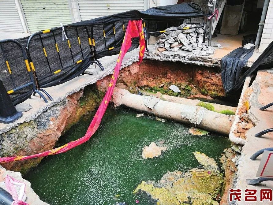 記者來到市中心城區文明北路159號大院,即劉先生反映的會豐花園小區,在該小區A棟2號梯前,記者看到一個長、寬均約為2米的坑,坑外用鐵管簡單地圍了起來,坑內積有污水,兩條污水管道裸露在外。