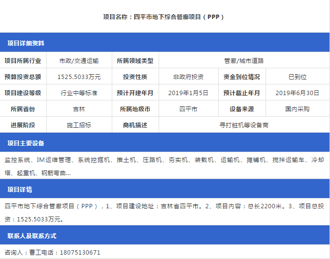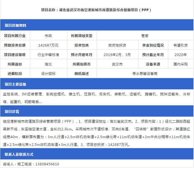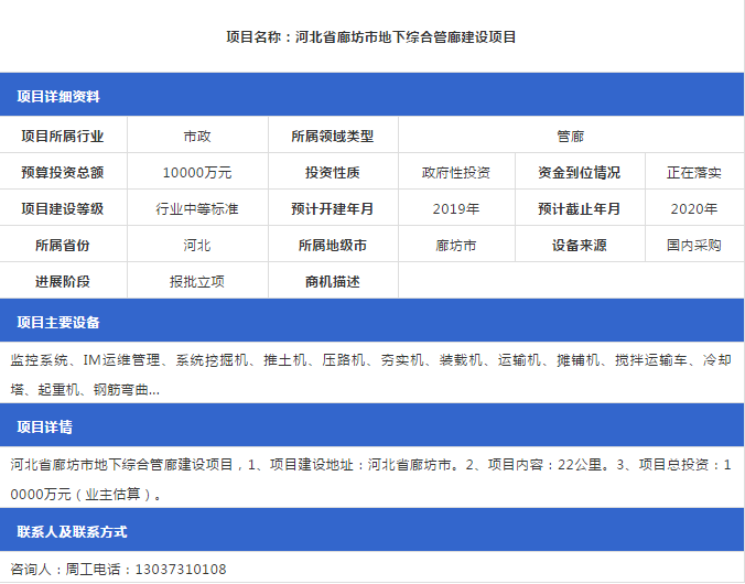 【管廊項目】最新管廊項目招標信息