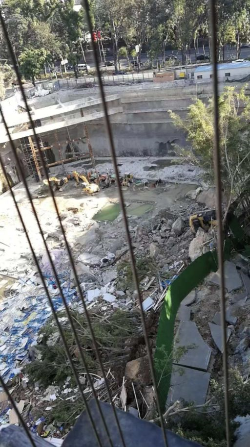 記者在現場看到,地面距離施工工地有數十米落差。受今日早晨塌方事故影響,原本連片的鐵皮房也有一部分落入工地。工地內還有不少倒伏的樹木、泥土和巨石,場面十分驚險。