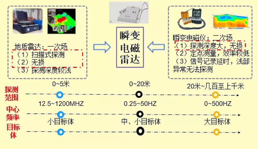 項目技術(shù)研究概況 “城市淺層瞬變電磁雷達(dá)研制及應(yīng)用”項目采用的主要技術(shù)原理為瞬變電磁雷達(dá)系統(tǒng)。該系統(tǒng)應(yīng)用調(diào)制的瞬變電磁波形和定向天線向地下空間中的特定空域發(fā)射電磁波,以搜索目標(biāo)域內(nèi)的物體(目標(biāo)),把能量的一部分反射回雷達(dá)接收機(jī)進(jìn)行回波處理,從中提取距離、速度、角度 位置和其他目標(biāo)識別特征等目標(biāo)信息。 項目研究技術(shù)經(jīng)濟(jì)指標(biāo):實現(xiàn)了1:15的探測能力、淺層0~20m的探測深度和20Km/h的探測速度。 項目研究解決的主要技術(shù)問題:結(jié)合瞬變電磁儀與工程地質(zhì)雷達(dá)二者的優(yōu)點(diǎn),克服了瞬變電磁儀定點(diǎn)測量效率低的問題,彌補(bǔ)了地質(zhì)雷達(dá)探測深度淺的缺陷,有效降低了設(shè)備抗干擾、頻帶寬、關(guān)斷時間、一次場過渡過程的影響,最終實現(xiàn)在城市強(qiáng)電磁干擾背景下地表至較大深度地質(zhì)體的快捷、便利無損探測。 REC “瞬變電磁雷達(dá)原理”MP4視頻 項目關(guān)鍵技術(shù)及創(chuàng)新點(diǎn) 該項目研究的關(guān)鍵技術(shù)如下。 1)基于信息化技術(shù)的瞬變電磁雷達(dá)研發(fā)。主要內(nèi)容為:①高精度同步信號電磁數(shù)據(jù)采集器研制;②可發(fā)射多種波形的連續(xù)脈沖電磁發(fā)送機(jī)研制;③不同規(guī)格、匝數(shù)的天線設(shè)計及探測效果分析及高精度測量輪設(shè)計。 2)多維可視成像的處理軟件開發(fā)。 3)不同目標(biāo)體的探測參數(shù)、模式與方法組合技術(shù)研究。 與國內(nèi)外同類技術(shù)的比較 瞬變電磁雷達(dá)(Transient Electromagnetic Radar,簡稱TER)與國內(nèi)外現(xiàn)有的瞬變電磁儀與工程地質(zhì)雷達(dá)等相關(guān)技術(shù)相比較,主要的技術(shù)創(chuàng)新點(diǎn)如下。 1)國際上率先提出瞬變電磁雷達(dá)的概念。經(jīng)過大量室內(nèi)模擬、現(xiàn)場試驗,實現(xiàn)了1:15的探測能力、淺層0~20m的探測深度和20Km/h的探測速度。 2)采用上升沿觸發(fā)、過零取樣、全時域密集采樣和多姿態(tài)D組合裝置實現(xiàn)了瞬變場早期純二次場信號的直接測量。 3)變磁通式天線擬地震信號接收提高了有用信號的識別能力。 4)提高了瞬變電磁法縱橫向的分辨率。 5)提高了雷達(dá)模式瞬變電磁法采集信號的信噪比。 地質(zhì)雷達(dá)、瞬變電磁雷達(dá)及瞬變電磁儀技術(shù)性能比較 項目應(yīng)用成果與效益 “城市淺層瞬變電磁雷達(dá)研制及應(yīng)用”項目成果近年來已在北京昌平南口試驗場、北京朝陽公園、河北多條道路、“一帶一路高峰論壇”場館安全檢查、天津東興路道路坍塌探查、北京平安里地鐵開挖管線盤查、首鋼廠區(qū)地下管線普查、雄安新區(qū)古戰(zhàn)道勘察、北京順義果粒橙排水溝探查等項目中得到工程實際應(yīng)用。工程檢測數(shù)據(jù)經(jīng)過與已知資料數(shù)據(jù)對比,并經(jīng)開挖跟蹤驗證,證明TER瞬變電磁雷達(dá)具有良好的工程應(yīng)用價值。同時,通過項目技術(shù)產(chǎn)品化等手段,也已取得了良好的經(jīng)濟(jì)效益。 經(jīng)濟(jì)效益 該項目所研發(fā)的淺層瞬變電磁雷達(dá)技術(shù)不僅可整體提升我國瞬變電磁法的應(yīng)用水平,也有望應(yīng)用在以下諸多領(lǐng)域中推廣應(yīng)用,產(chǎn)生良好的經(jīng)濟(jì)及社會效益。 1)市政工程:金屬或非金屬地下管線位置和走向探測。 2)交通工程:公路施工質(zhì)量(包括面基層厚度和存在隱患)和運(yùn)營情況,鐵路路基隱患等的檢測。 3)地質(zhì)勘探工程:巖層、空洞、斷層、地質(zhì)結(jié)構(gòu)、地下水以及地下礦藏等目標(biāo)查找和描述。 4)工程質(zhì)量檢測:隧道襯砌質(zhì)量、橋梁結(jié)構(gòu)和存在病害、建筑物內(nèi)的鋼筋分布探測。 5)水利工程:江、河、湖泊的大壩存在隱患檢測、床面測繪及水下目標(biāo)探測。 6)軍事工程:工程前期的地質(zhì)勘查、地下工事探測、地下未爆彈藥和埋藏軍械的查找,以及金屬或非金屬埋設(shè)物查找(例如地下管道、電纜線等)。 7)考古發(fā)掘項目:古墓和古遺址探測。 基礎(chǔ)設(shè)施領(lǐng)域應(yīng)用前景 近年來,隨著我國社會經(jīng)濟(jì)的高速發(fā)展,各類城市市政管線、水庫和欄河堤壩、城市地下空間工程等基礎(chǔ)設(shè)施建設(shè)事業(yè)持續(xù)快速發(fā)展,城市地下空間基礎(chǔ)條件問題越來越受到重視,尤其是老城區(qū)雜亂的城市管線埋藏位置模糊、城市道路地下空洞坍塌、巖溶分布區(qū)內(nèi)淺層不良地基、欄水堤壩管涌等淺層地質(zhì)問題所帶來的危害日趨嚴(yán)峻,由于分布范圍和涉及領(lǐng)域廣且與人類日常生產(chǎn)生活息息相關(guān),近年因淺層地質(zhì)隱患問題未能及時排查處理而造成嚴(yán)重的人身傷亡和財產(chǎn)損失事故時有發(fā)生。因此高精度、高效率地探測淺層地質(zhì)問題也就顯得更加重要和迫切,開發(fā)出適合于我國市場需求的淺層瞬變電磁測量系統(tǒng)極為緊迫。 在此背景下,該項目自主研發(fā)的瞬變電磁雷達(dá)(Transient Electromagnetic Radar,簡稱TER)技術(shù)結(jié)合地質(zhì)雷達(dá)與瞬變電磁儀二者優(yōu)點(diǎn),克服了瞬變電磁儀定點(diǎn)測量效率低的問題,