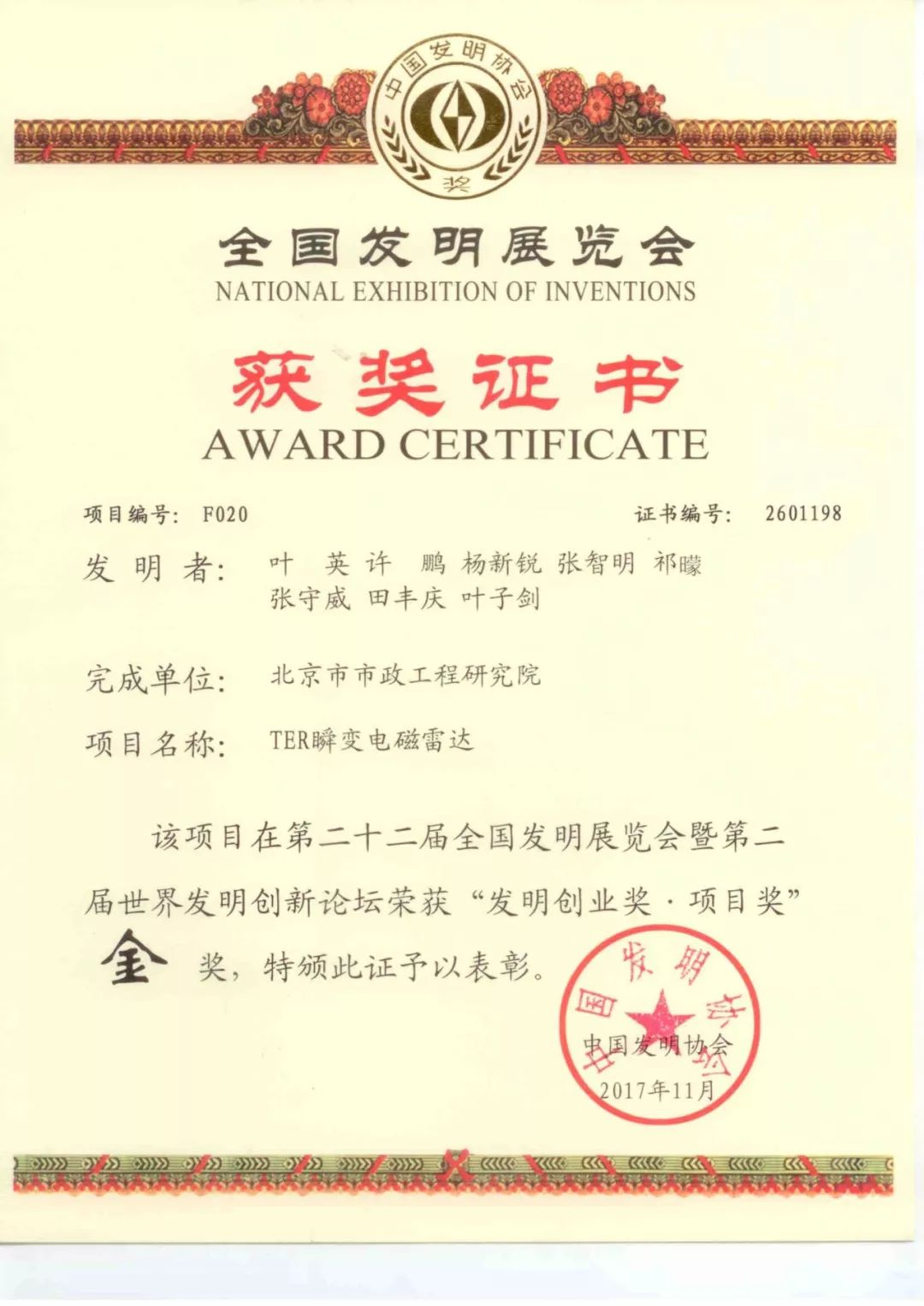 “城市淺層瞬變電磁雷達(dá)研制及應(yīng)用”項目于2015年7月立項,2017年6月完成,并于2017年10月通過了中國市政工程協(xié)會市政科技專業(yè)委員會組織的項目成果鑒定。該項目研究由北京市市政工程研究院、北京市建設(shè)工程質(zhì)量第三檢測所有限責(zé)任公司、天津市地球物理勘探中心、中交路橋科技有限公司承擔(dān)。該項目獲得“全國市政行業(yè)2017年度市政工程科學(xué)技術(shù)獎”一等獎,其研究成果適用于城市管線及周邊環(huán)境綜合探測、地鐵上覆空洞探查及前方地質(zhì)預(yù)報。