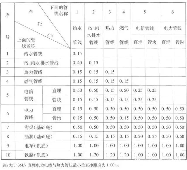 1. 各種工程管線不應在垂直方向重疊直埋敷設