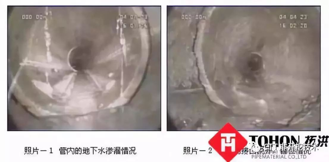 根據(jù)調(diào)查發(fā)現(xiàn),管道的接口部位有明顯的錯位,管口發(fā)生嚴重拉開現(xiàn)象。其原因是施工時管道地基處理方法不同,以及管接口開裂后大量泥沙流入管內(nèi)后,導(dǎo)致管的力不夠所致。