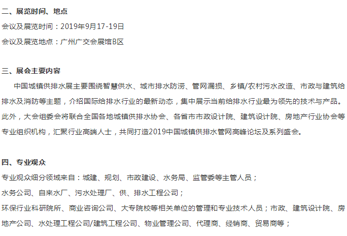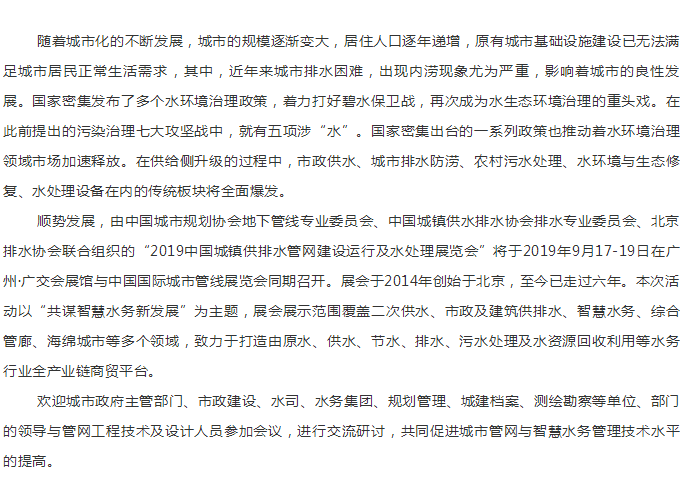 關于舉辦“2019中國城鎮供排水管網建設運行及水處理展覽會”