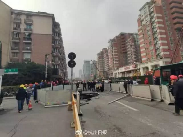 今天(7日)早上8點多,杭州建國北路解放路口一處路面發生塌陷,目前工程人員正在搶修,工人鑿開的柏油路下有是一個中空的大洞,能夠看到裸露的管道。塌陷位置邊上是在建的地鐵5號線。記者在現場看到,多輛黃色的搶修車停靠在路邊,塌陷附近聚集了很多戴著安全帽的中國中鐵四局工作人員,路過的行人都被勸說不要在此停留:“哪怕是警戒線外,可能腳下站的位置也是空的。”目前,慶春路與建國北路交叉口由北向南方向因前方搶修實施道路管控,請來往車輛注意繞行。