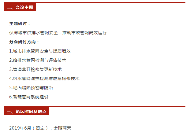 大會以“保障城市供排水管網(wǎng)安全,推動市政管網(wǎng)高效運行”為主題,總結(jié)國內(nèi)外先進經(jīng)驗和有效做法,圍繞給排水管網(wǎng)的檢測與修復(fù)、安全與運維等多方面展開討論。會議籌備期間,為更好地交流相關(guān)技術(shù)成果,特向?qū)I(yè)技術(shù)人員征集學(xué)術(shù)論文,所有收錄的稿件,在專家審核后,集結(jié)成冊。其中特別優(yōu)秀的論文,將安排在《天津建設(shè)科技》、《供水技術(shù)》期刊公開發(fā)表。