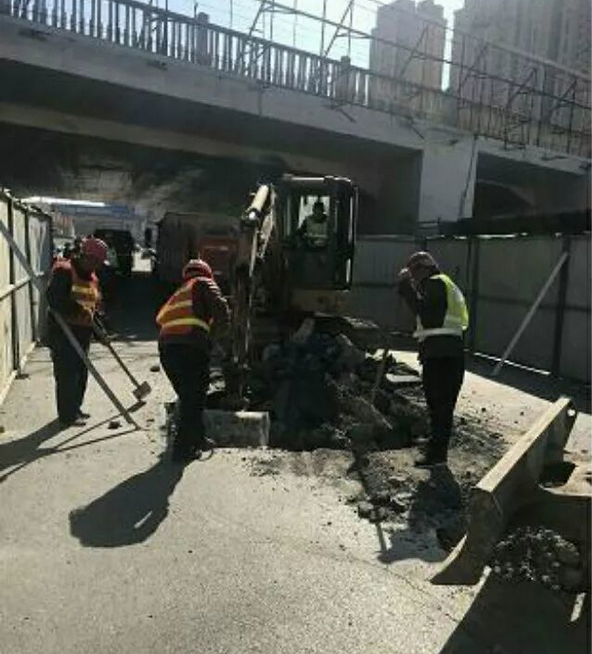 3月13日下午4時,路面巡視人員發現天衢西路鐵道橋西側路面出現異常塌陷,隨即安排人員和設備到現場進行處置,維修過程中,發現路面下方有空洞,調集施工機械和檢測設備,在昨天晚八時開始擴大塌陷面,并邀請原施工單位專業人員到現場協助初步推斷塌陷原因。制定施工方案,初步預計施工搶修期在15天左右(如因天氣、路況復雜等特殊原因搶修工作未能按時施工,則封閉時間酌情延長)。提醒廣大市民,如有條件請繞行,必經此路段,減速慢行,注意安全!