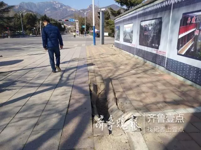 近日,市民李先生向記者反映,在泰山區(qū)紅門路,岱廟北門十字路口東南角有一處路面塌陷十分嚴重,存在極大的安全隱患,晚上光線不好,很容易發(fā)生安全事故。