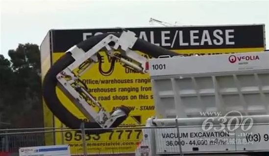這款真空挖掘機的手臂頂端有一個像鉆頭一樣的金屬構件,它可以說是一個力大無窮的家伙,輕易可以打開地表,甚至一些水泥地也毫不費力。然后在這個鉆頭的后面連接著一個長幾十米的管道,管道的另一端則連接了一個收集箱,這樣在施工的時候被吸附的泥土沙子都會被送進這個收集箱里。
