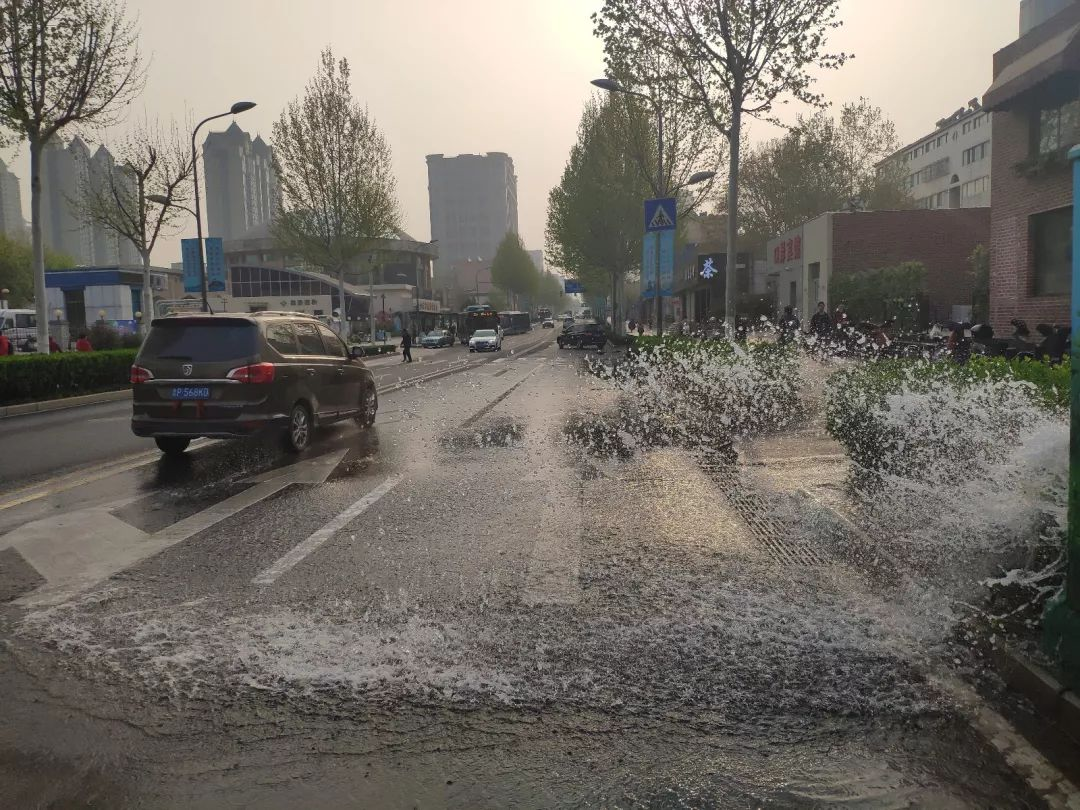 記者看到,市民經(jīng)過(guò)此處噴涌的路段時(shí)紛紛繞行,而一位出租車(chē)司機(jī)竟然趁機(jī)將車(chē)開(kāi)到水柱前洗起了車(chē)。
