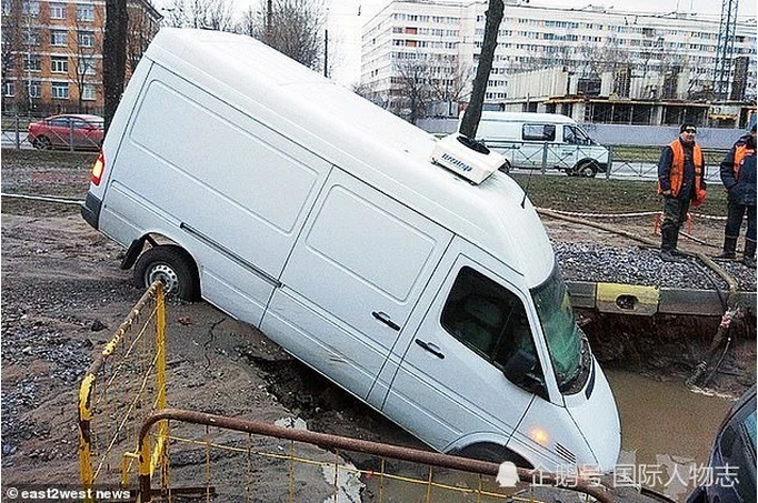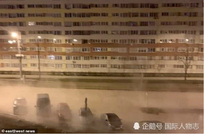 照片和視頻顯示,在死者公寓外的街道上,從破裂的水管中噴出的熱水把街道變成了一條冒著熱氣的“河流”。附近的路面上還有一個(gè)坑,坑里的熱水吞沒了一輛奔馳面包車。