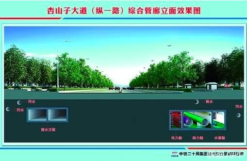 該管廊工程由中鐵二十局承建,南起老徐蕭公路,北至黃河南路以北,與新淮海西路綜合管廊相交,穿越新建杏山子地鐵車站和地下停車場,途經310國道,兩次橫穿王窯河河道。