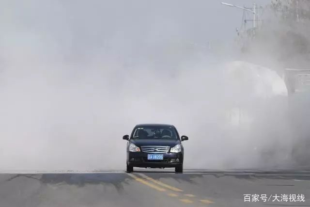 很多車輛不得不在對向車道上逆行而過,熱氣隨風刮出百余米才逐漸散去,視線受阻時很多車輛只好停下來等待。