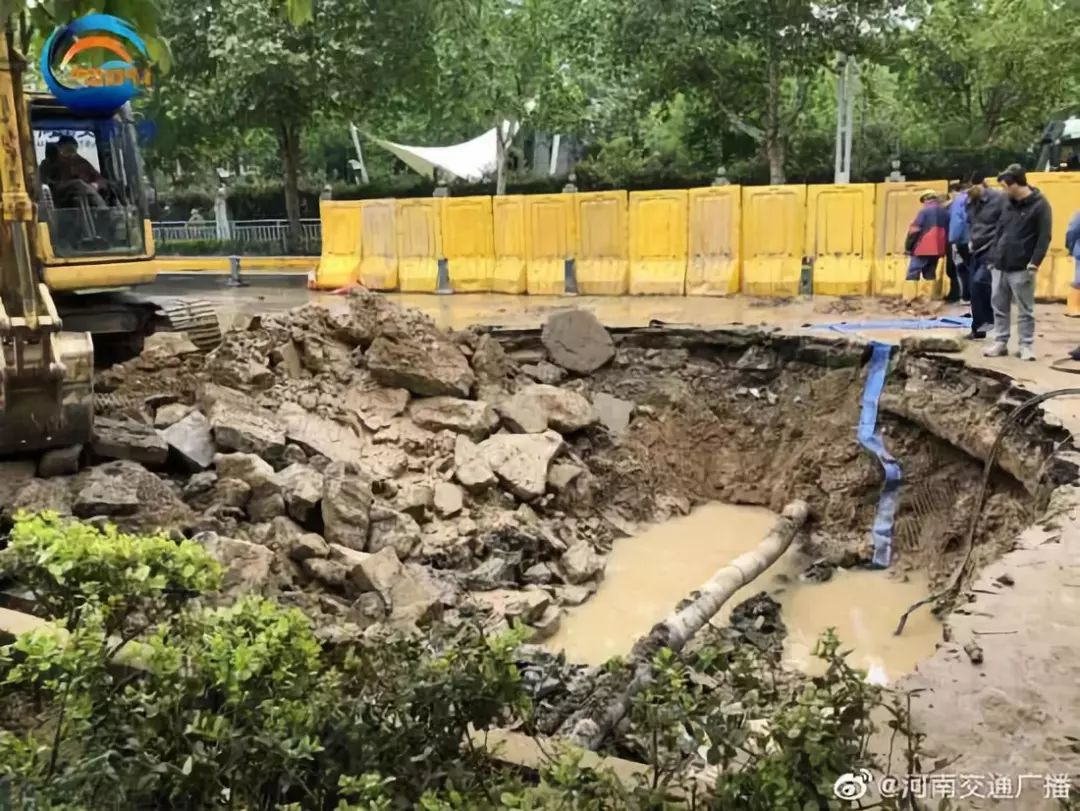 4月26日上午,車友反映,鄭州市九如東路商務外環路東200米路面出現大面積塌陷。記者晁兮隨即趕到現場。看到九如東路從商務外環路到黃河南路一段已經實施了交通管制。鄭州市自來水公司搶修人員正在現場實施搶修。