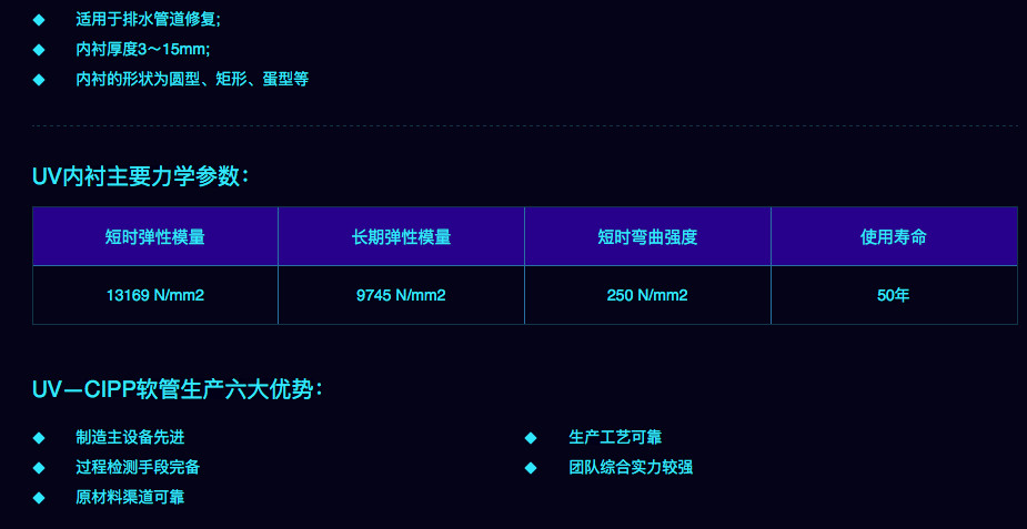 d)單次(通常)修復長度可達200m,其它長度須定制;