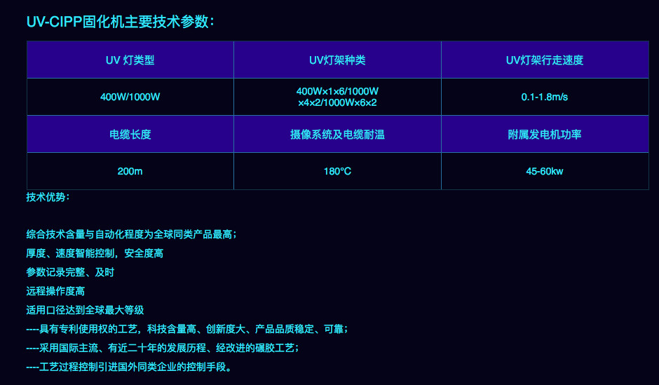 c) 節約能源、安全度高。采用紫外線固化,能源需求較低,施工現場不用水或蒸汽固化,不產生有毒氣體或其它有害物,對于保證施工人員及施工附近人員的安全,保護環境是十分有利。