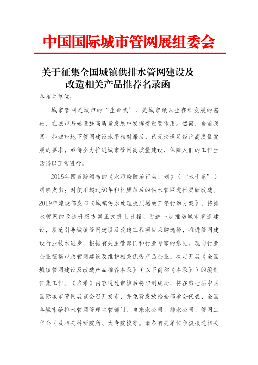 針對目前國內外疫情情況較嚴峻,為響應國家防疫政策,中國國際城市管網展組委會特此聯合推出本次征集活動,推動各相關單位協同發展。