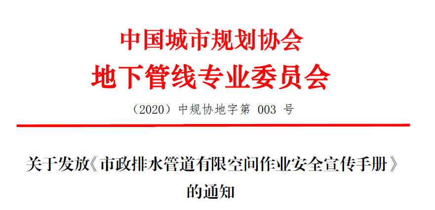 為普及市政排水管道有限空間作業安全知識,提升從業人員安全意識,提高作業單位安全管理水平,有效預防市政排水管道有限空間作業安全事故的發生,由中國城鎮供水排水協會城市排水分會、中國中國城市規劃協會地下管線專業委員會、中國職業安全健康協會有限空間作業安全分會、江西省管道疏浚行業協會共同發起及編寫,籌措經費印制了《市政排水管道有限空間作業安全宣傳手冊》(以下簡稱《手冊》),免費向各會員單位發放,可為相關從業人員的日常學習和作業提供參考和指導,制定《手冊》發放方案如下: