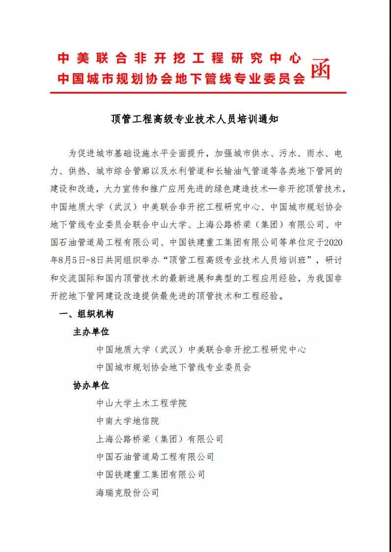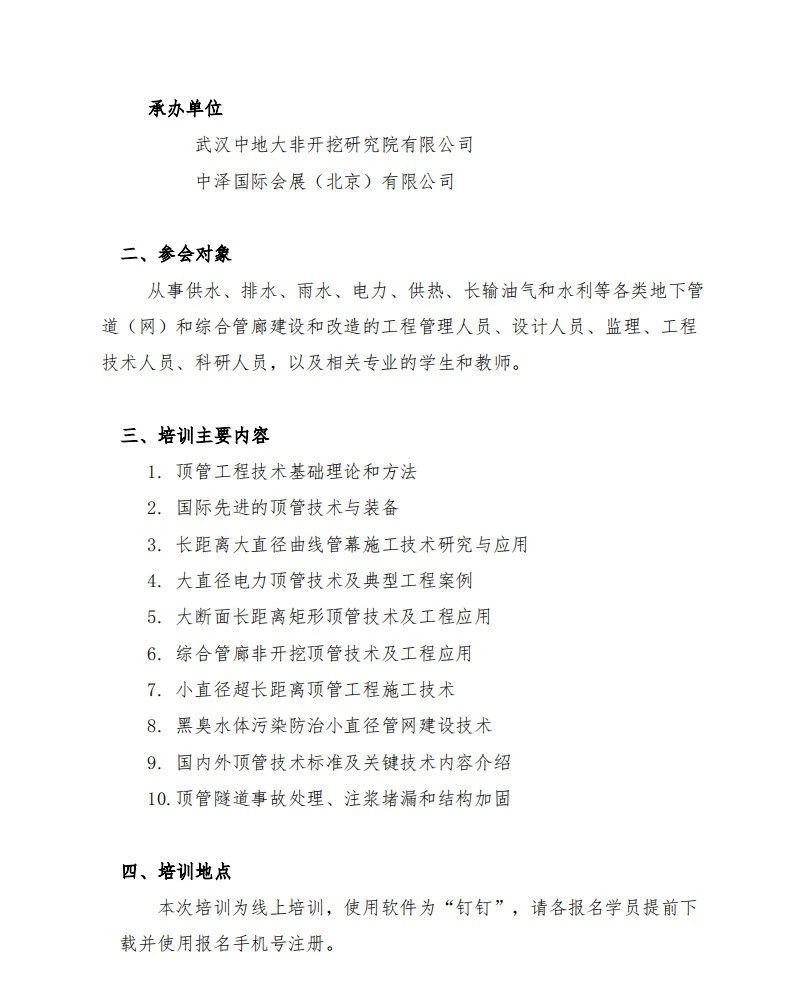 【會議通知】頂管工程高級專業技術人員培訓通知