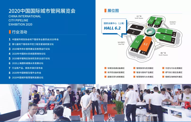 中國國際城市管網展是管網行業內重要的盛事,目前已成為未來城市管網的創新平臺。第七屆將繼續在2020年11月25-27日,于國家會展中心(上海)舉辦。展示面積將超過35000平米,屆時將吸引展商600余家,專業觀眾30000多人次。展會同期將開展40余場高峰論壇、參會代表和新品發布會議,參會代表4000余人。