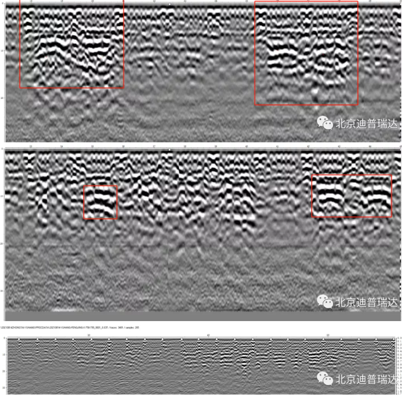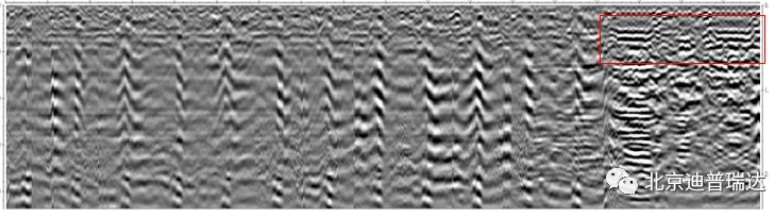 4、采用寬頻帶技術(shù),其中心頻率600MHz,但其帶寬較寬,低頻和高頻成分豐富,其測深與500MHz相當(dāng),分辨率趕上800MHz,效果遠(yuǎn)遠(yuǎn)優(yōu)于傳統(tǒng)雷達(dá)。