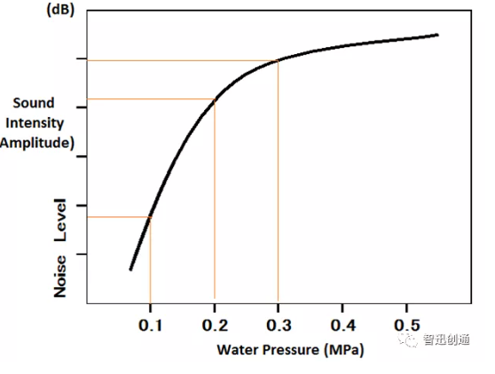 當輸水管道發生泄漏時,水往往會從泄漏點噴出,一般會發出以下四種聲音: -水流聲 -撞擊聲音 -摩擦的聲音 -管道振動聲 綜合起來,這些聲音就構成了泄漏聲。 在沒有泄漏的地方,用戶只能聽到水流的聲音。 影響漏水噪聲的因素 地下管道漏水噪聲的質地取決于眾多參數,其中最主要的參數包括: -漏點的大小(孔或裂縫的大小) -水壓力 -管道材料 -埋管深度 -管直徑 -土壤結構或類型 水壓與漏水噪聲的關系 如下圖所示,這是一個直接的關系,因此,在較高的壓力下,泄漏噪聲更大,更容易檢測。 不同材質的管道漏水噪聲傳播的的特性 不同材料制成的管道具有不同的噪聲傳播速率。例如,金屬管道的泄漏噪音在經過較長的距離后就會減弱,而聚乙烯管道的泄漏距離則要短得多。換句話說,金屬管道所產生的泄漏噪音在相對較長的距離內仍可識別,但聚乙烯管道中漏水噪聲傳播的距離會短的多。