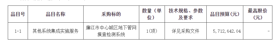 合同包1(廉江市中心城區地下管網摸查檢測系統):