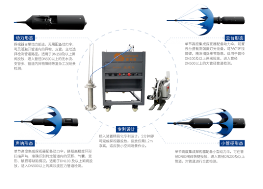 檢測過程中,檢測情況可通過尾部連接的線纜實時傳回到地面操作設備,作業人員通過智能終端實時顯示的畫面信息,判斷管道是否存在變形、腐蝕、泄漏等結構性缺陷,或沉積、結垢、障礙物等功能性缺陷。