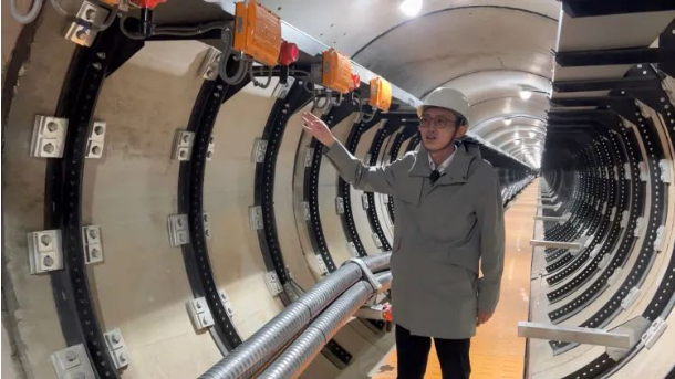 內徑3米、外徑3.6米的綜合管廊內,干凈整潔、燈火通明,管線排列井然有序。管廊北側上方的監測設備動態記錄著氧氣、濕度等管廊內環境數據。