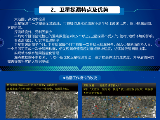 我單位遙感應(yīng)用創(chuàng)新產(chǎn)品--城市供水管網(wǎng)衛(wèi)星探漏服務(wù)