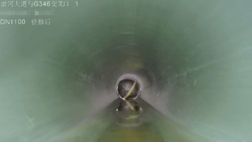 結(jié)合現(xiàn)場要求和工藝特點,此次項目確定采用紫外光固化法對該DN1100 大口徑玻璃鋼壓力管道進行修復。現(xiàn)場自停水至通水,兩個井位間261 米管道的紫外光固化修復,實際施工時間不超過 72 小時。在施工中,對非開挖修復更新工程技術(shù)規(guī)程,于玻璃鋼管道無法完全斷管施工,采用開天窗再手糊玻璃鋼恢復;新舊管端口處理,采用手糊玻璃鋼和不銹鋼雙脹環(huán)聯(lián)合密封法,有效達到了端口密封處理的要求。