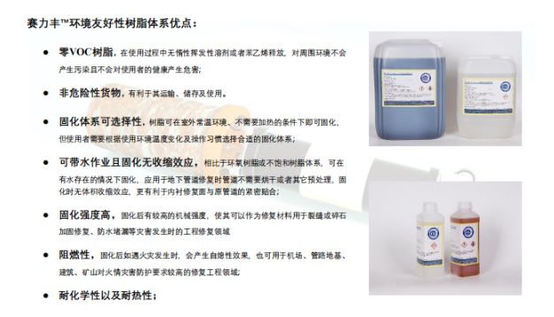 · 該阻水樹脂中不含有揮發(fā)性的有機溶劑、不含有TDI游離型單體,不含有鄰苯二甲酸類增塑劑,按非危險化品進行儲運,有利于施工人員的身體健康,并且不會對環(huán)境產(chǎn)生危害;