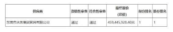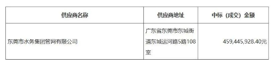 東莞市污水管網一體化運營維護維修服務項目結果公告,東莞市水務集團管網有限公司以45944.5928萬元中標該項目。