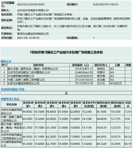 8月18日,杭海新區污水處理廠易地新建及杭海新區工業污水預處理廠新建項目EPC工程中標公示發布,浙江鴻翔建設集團股份有限公司、上海市政工程設計研究總院(集團)有限公司聯合體以93578.6592萬元中標該項目,工期為20個月(其中施工圖二次優化工期:3個月)。