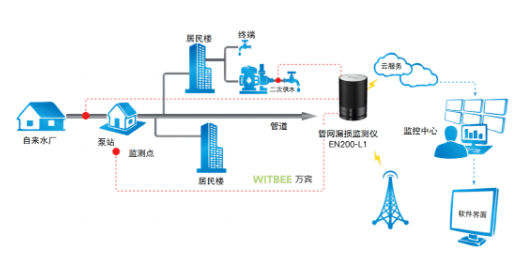 供水管網(wǎng)漏損監(jiān)測(cè)通過在供水管網(wǎng)布設(shè)的管網(wǎng)漏損監(jiān)測(cè)儀,可實(shí)現(xiàn)遠(yuǎn)程實(shí)時(shí)聽音監(jiān)測(cè);當(dāng)管網(wǎng)發(fā)生漏水,管壁與水流摩擦產(chǎn)生聲音信號(hào)時(shí),管網(wǎng)漏損監(jiān)測(cè)儀將采集的聲音信號(hào)通過無線通訊傳輸至平臺(tái),平臺(tái)通過人工智能算法,主動(dòng)完成漏水信號(hào)的識(shí)別,確認(rèn)漏點(diǎn)后在地圖上直觀呈現(xiàn),同步發(fā)送報(bào)警通知。