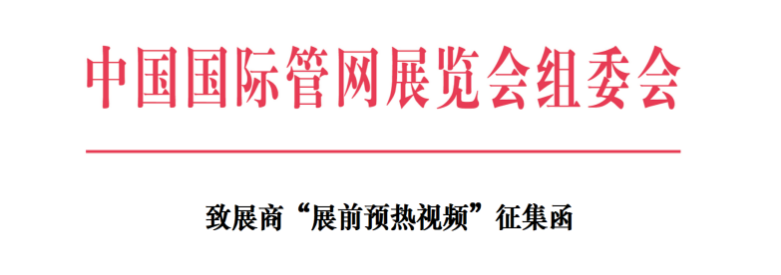 2023第十屆中國國際管網展覽會已進入開幕倒計時,為加大中國國際管網展覽會內部宣傳,展示展商風采,現特向參展企業征集“展前預熱視頻”,誠摯邀約貴企業領導或項目負責人參與錄制,大會組委會將于11.1日—11.22日在宣傳平臺進行長期刊播。詳情如下: