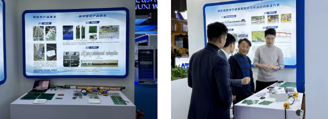 地下空間公司工程技術(shù)研究中心自主研發(fā)的地面雷達(dá)、孔中雷達(dá)設(shè)備,備受關(guān)注。基于分時(shí)復(fù)用邏輯,支持5種不同頻段共16通道T/R組件時(shí)序工作,兼顧探測深度與精度。并行等效采樣技術(shù),充分利用ADC采樣性能,在高速運(yùn)動(dòng)情況下復(fù)現(xiàn)厘米級精度數(shù)據(jù),時(shí)變增益PGA+LNA,顯著提高有效探測距離且結(jié)構(gòu)緊湊,特別適用于隨鉆檢測斷裂帶、空洞、大埋深管線等。現(xiàn)場接待人員與來自各地的訪客熱情耐心的溝通交流,進(jìn)行全面的解說。地下空間公司展位的訪客絡(luò)繹不絕,獲得眾多贊賞。