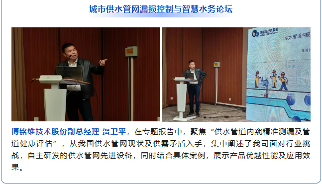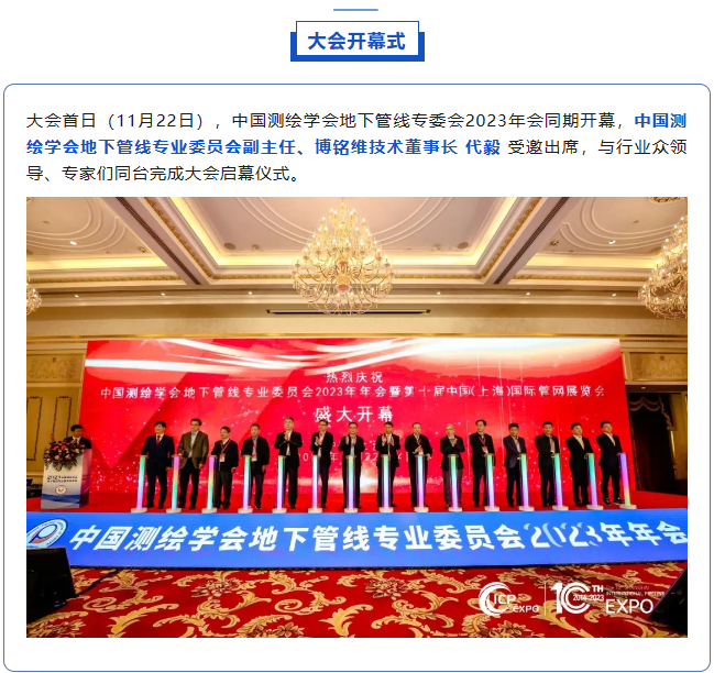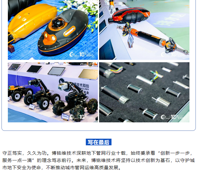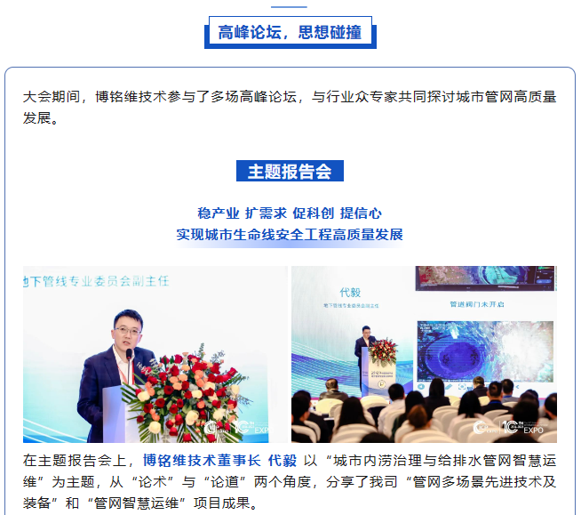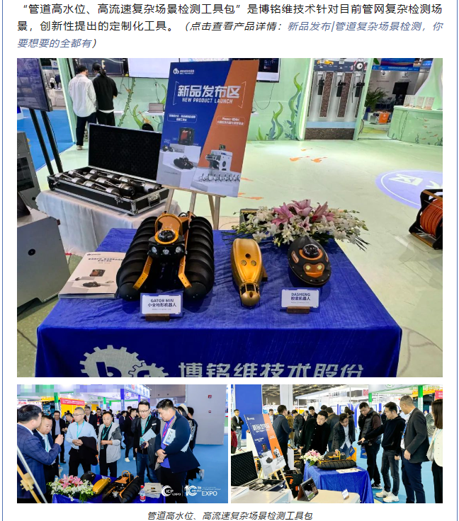 11月22日至24日,2023第十屆中國(上海)國際管網(wǎng)展覽會在國家會展中心(上海)順利舉辦!作為國內供排水管網(wǎng)檢測領域引領者,博銘維技術攜多款新品亮相本次盛會,并在多個論壇做專題報告,全方位展示了我司在城市管網(wǎng)領域的綜合實力。