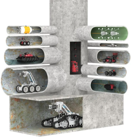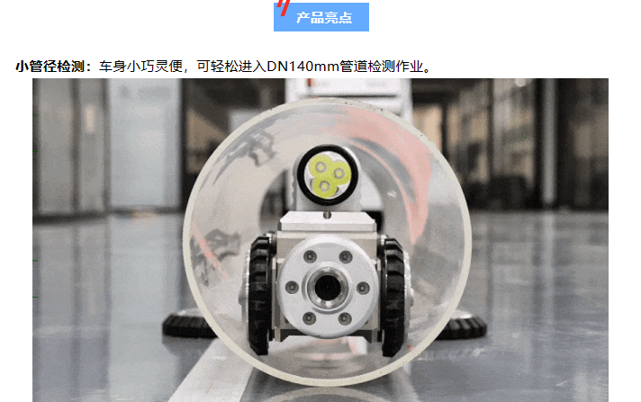 在我國,常見的污水管直徑(內徑)范圍為DN300mm至DN2000mm,主要用于城市主干道、污水處理廠等大流量場所的排放。所以在進行城市排水管道檢測時,常規機器人適應管徑都在DN300mm以上。